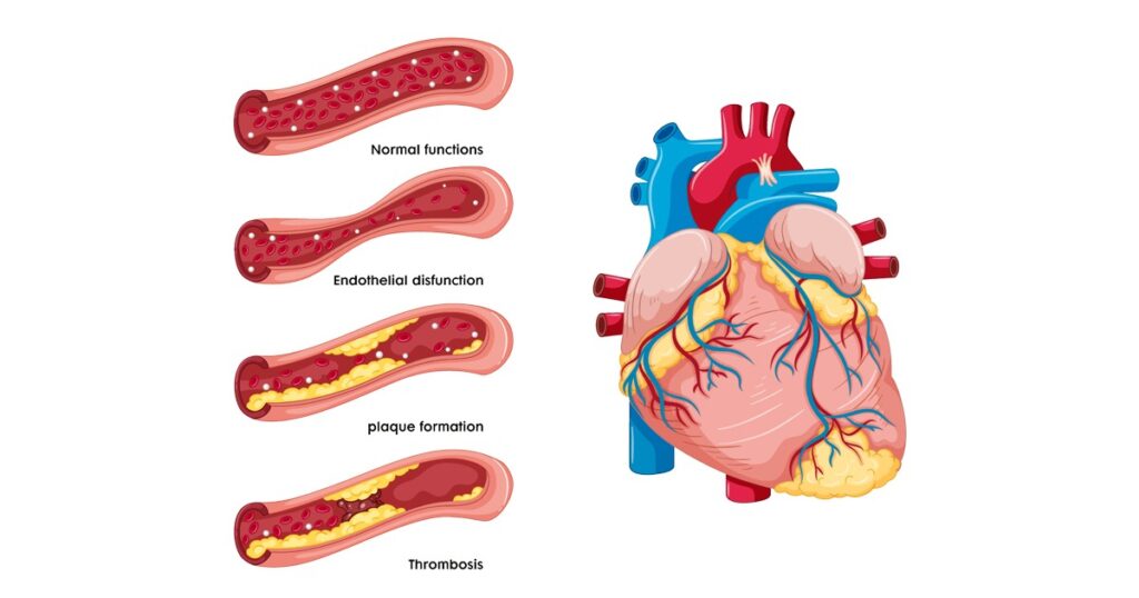 A clot in the heart’s arteries can reduce or stop blood flow to the heart muscle, resulting in a heart attack. This condition is known as coronary artery thrombosis.